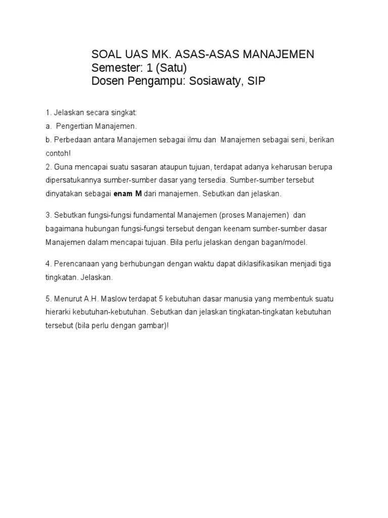 Top pdf soal dan jawaban uas pengantar manajemen 123dok com . Konsep manajemen rantai pasokan diadopsi oleh berbagai perusahaan sebagai cara yang penting dalam meraih . 20200815 contoh soal pengantar manajemen kepemimpinan organisasi dan jawabannya. Soal uas smt 1 pengantar akuntansi kelas xi. Soal latihan uas dasar manajemen.